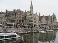 On the way to Amsterdam we spent the night in Ghent, Belgium.  It is a very old and beautiful town. We had a very nice dinner in the 3rd building from the left. Trevor also enjoyed the Belgium beers and so did Marion.