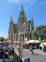 At Bayeux cathedral on a fete weekend. The 11th Century Bayeux tapestry is on display here and is 70M long. the whole story of William the Conqueror's invasion of England and battle against Harold at the Battle of Hastings is told.