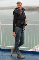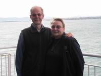 The photo to the right is Sharon in holiday mood on the boat approaching Santander in northern Spain and below is Marion and Trevor taken at the same time.
