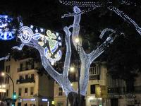 This is an evening in Malaga where extensive Christmas decorations had been put on the trees and strung across many streets.  They looked beautiful.