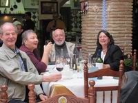 The snows over northern Europe in mid December delayed our Malaga/Luton flight as Lutin Airport was closed.  The 24hr delay was made enjoyable by meeting the other 4 travellers with T, M and Sharon seen round the dinner-table to the left.